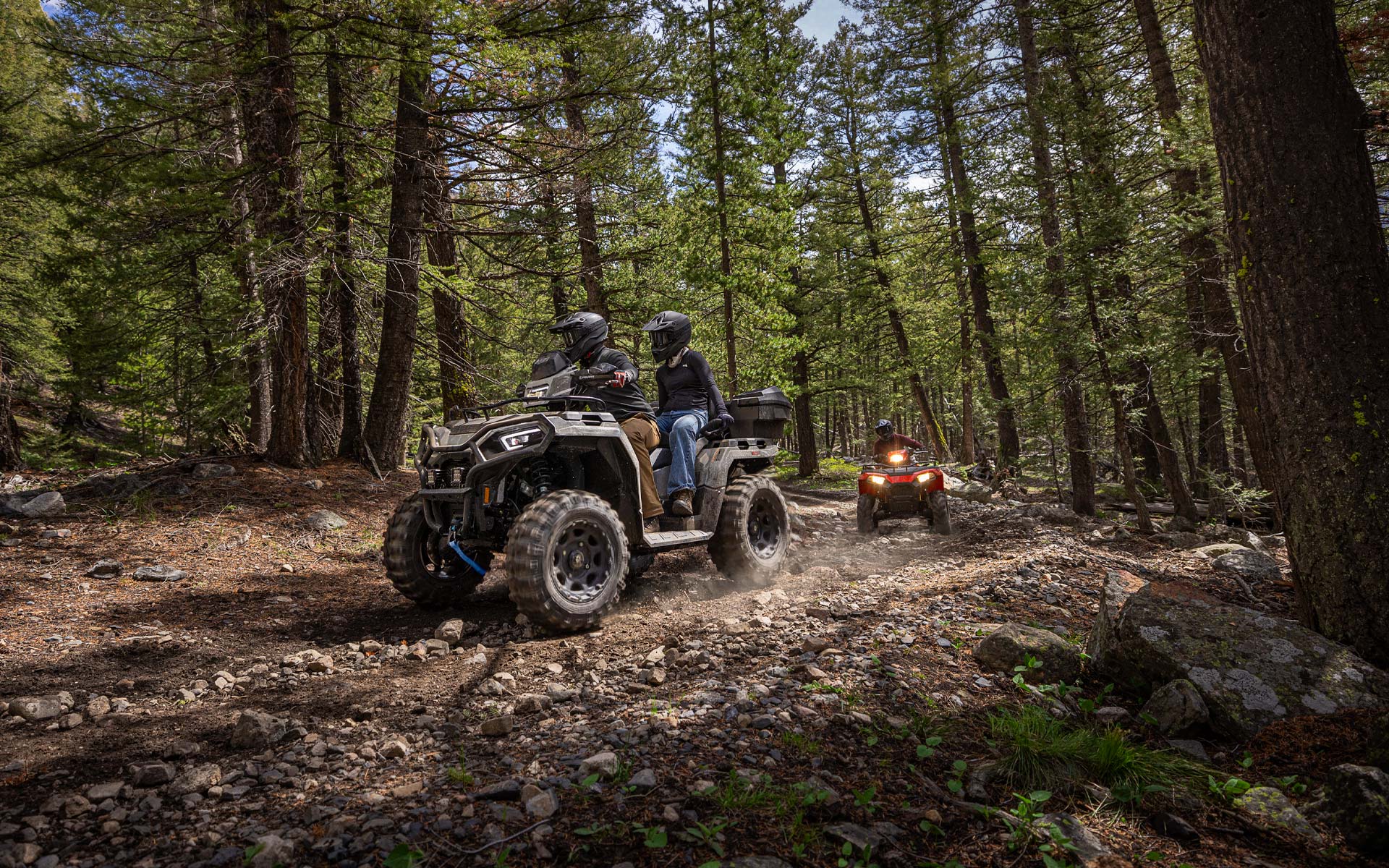 Share more adventures with the next-generation Sportsman Touring 570. Upgraded with a new design and more comfort, versatility and trail features to take on new terrain and explore farther, together.